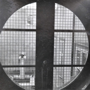 Slika 4: Pogled na notranje dvorišče skozi okroglo stopniščno okno, 1926, foto: dokumentacija MGML / Plečnikova zbirka.