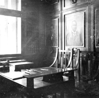 Slika 30: Razpravna oz. velika dvorana, 1927, foto: Tomažič, Ogrin; dokumentacija MGML / Plečnikova zbirka